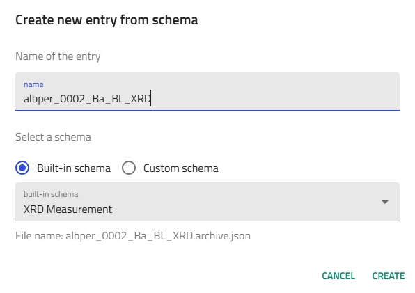 Step 3: Create XRD Measurement Entry¶